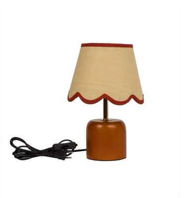 Aria Table Lamp with Jute Scallop Red Trim Lampshade (11.5 inches, Wood)