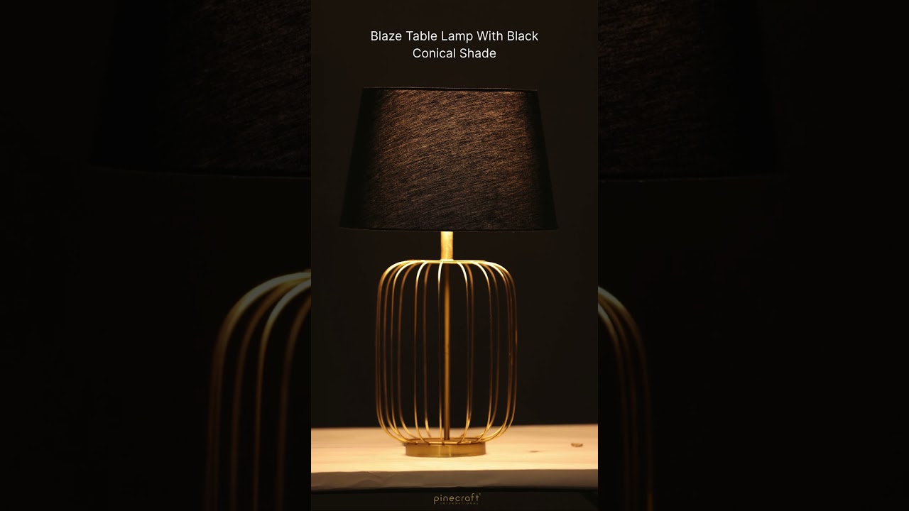 Add a touch of contemporary elegance to your interiors with the Blaze Metal Table Lamp. Crafted with a gold-finished open metal base that radiates lightness and style, this lamp is paired with a sleek black conical cotton fabric shade to create a striking contrast. Perfect for side tables, nightstands, or office desks, the Blaze lamp provides both functional lighting and modern charm.
