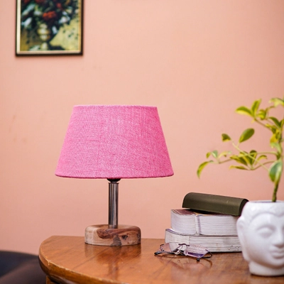 Edra Lamp with Pink Shade (11.5 inch, Wood)