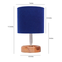 Edra Table Lamp With Cylindrical Blue Cotton Shade (11.5 inches, Wood)