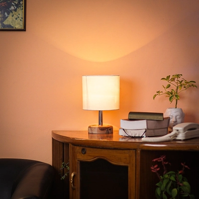 Edra Table Lamp With Cylindrical Off White Cotton Shade (11.5 inches, Wood)