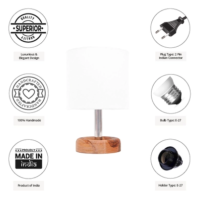 Edra Table Lamp With Cylindrical With White Cotton (11.5 inches, Wood)