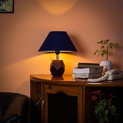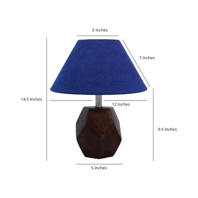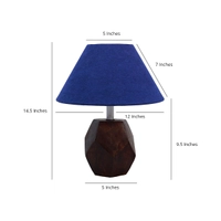 Sefinn Table Lamp With Blue Shade (14.5 inch, Wood)