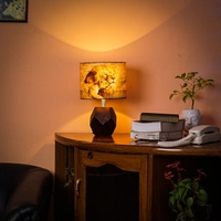 Illuminate your space with the Sefinn Table Lamp, a beautiful blend of modern elegance and classic charm. Standing at 13 inches tall, this exquisite lamp features a stunning printed silk cylindrical shade that not only disperses light beautifully but also adds a touch of sophistication to your decor. The warm wooden base complements the intricate design of the shade, making it a perfect centerpiece for your living room, bedroom, or office. Whether you're reading a book or hosting a cozy dinner party, the Sefinn Table Lamp sets the perfect ambiance.