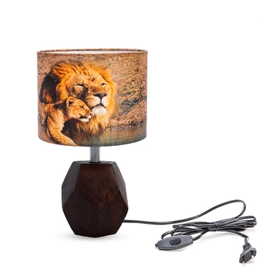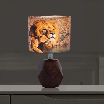 Sefinn Table Lamp With Printed Silk Cylindrical Shade (13 inches, Wood)