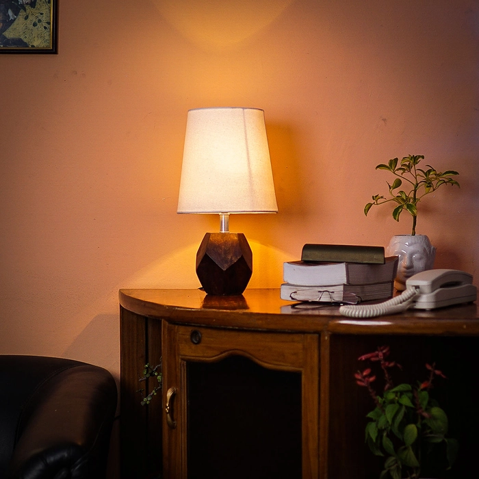 Sefinn Table Lamp With White Cotton Duck Conical Shade (15.5 inches, Wood)