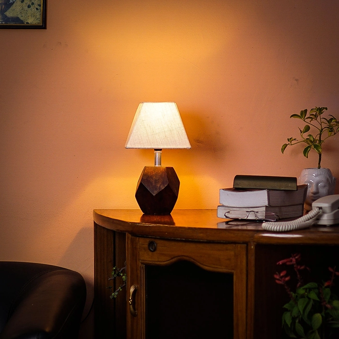 Sefinn Table Lamp With White Slab Square Shade (12 inches, Wood)